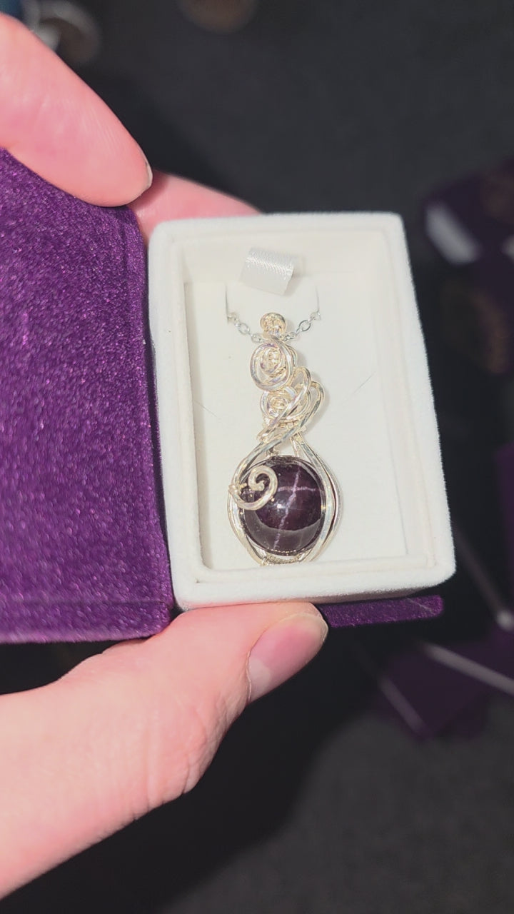 Star Ruby Sterling Silver Wire Wrapped Necklace